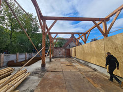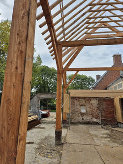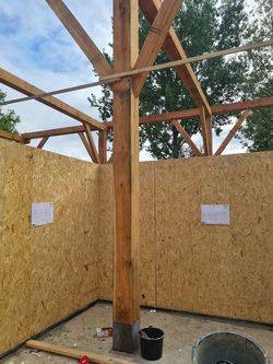 Versterking woonhuis, vervanging schuur en aanvullende bewonerswensen onder regie Nationaal Coördinator Groningen De aannemer is Bouwbedrijf Eldering. De gebintconstructie is gemaakt en geplaatst door Drents Eiken Gebint.